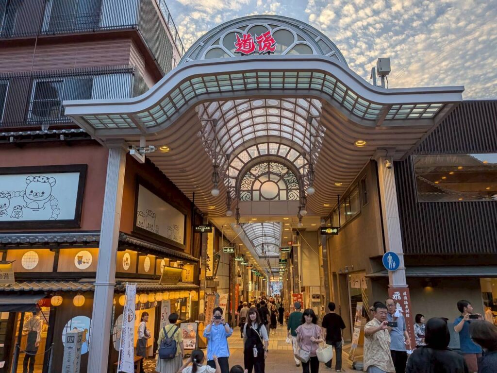 道後温泉本館から駅まで続くL字型の商店街には、土産物店や飲食店が軒を連ねています。